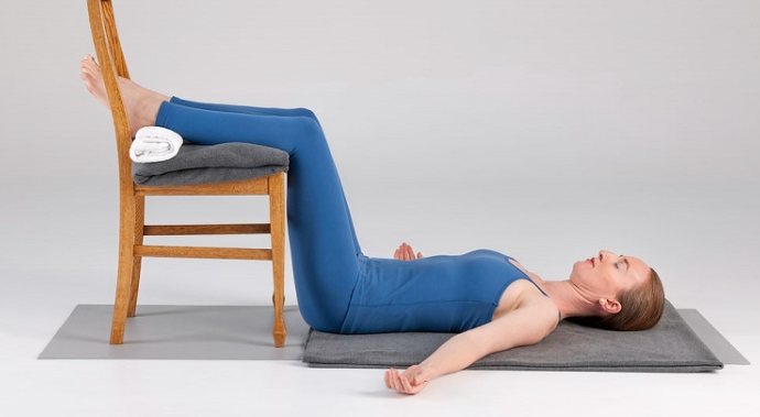 Nếu gặp khó khăn khi thực hiện động tác duỗi thẳng chân lên tường do bị chấn thương lưng, hông, đầu gối thì người tập có thể thực hiện tư thế đặt chân lên ghế. Đây là tư thế giúp thư giãn toàn thân, ổn định tâm trạng trong suốt quá trình hít thở sâu.